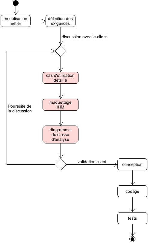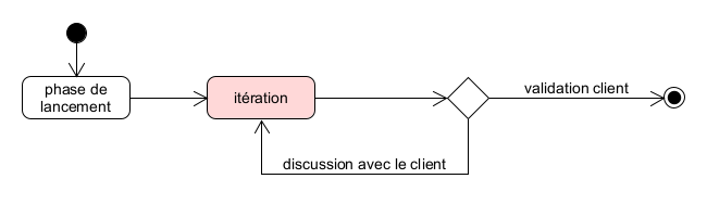 La phase de lancement est terminée, le client a validé le projet. On passe aux itérations.