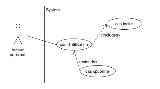 - scénario alternatif (numéro+lettre ou point d’extension) —> étend le scénario du numéro correspondant, alternative ou erreur par exemple